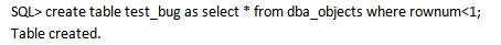 这个语句里的问题我是可以保持了(select * from test_bug where object_type=’TABLE’) t 这个子查询,抛出了 ORA-00600 的错误,我简化一番如何,简化为(select*from test_bug)t 这个子查询,同样还是会抛出一样的错误。