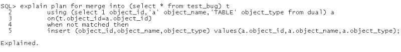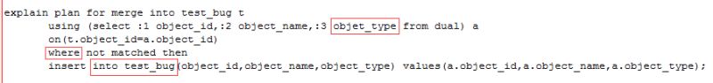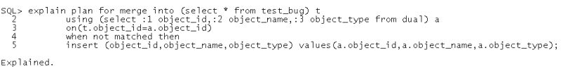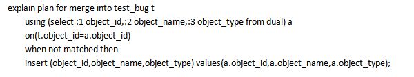 在 table_xx 的地方加入子查询,可能会让我们在联想到一些语句中使用子查询的 DML 方式,但是在 merge 语句中,这个地方会有问题,所幸的是这个问题目前的测试没有发现对线上环境产生严重的影响,需要引以为戒,不过问题还不能这么轻易下结论,我们继续往下看。