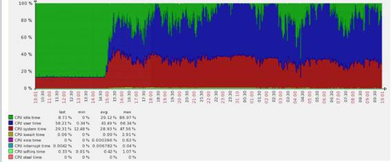 下面是我在一次系统监控中发现的一个性能问题,CPU 使用异常,而经过分析发现瓶颈来源于数据库层面的一个 SQL 语句。